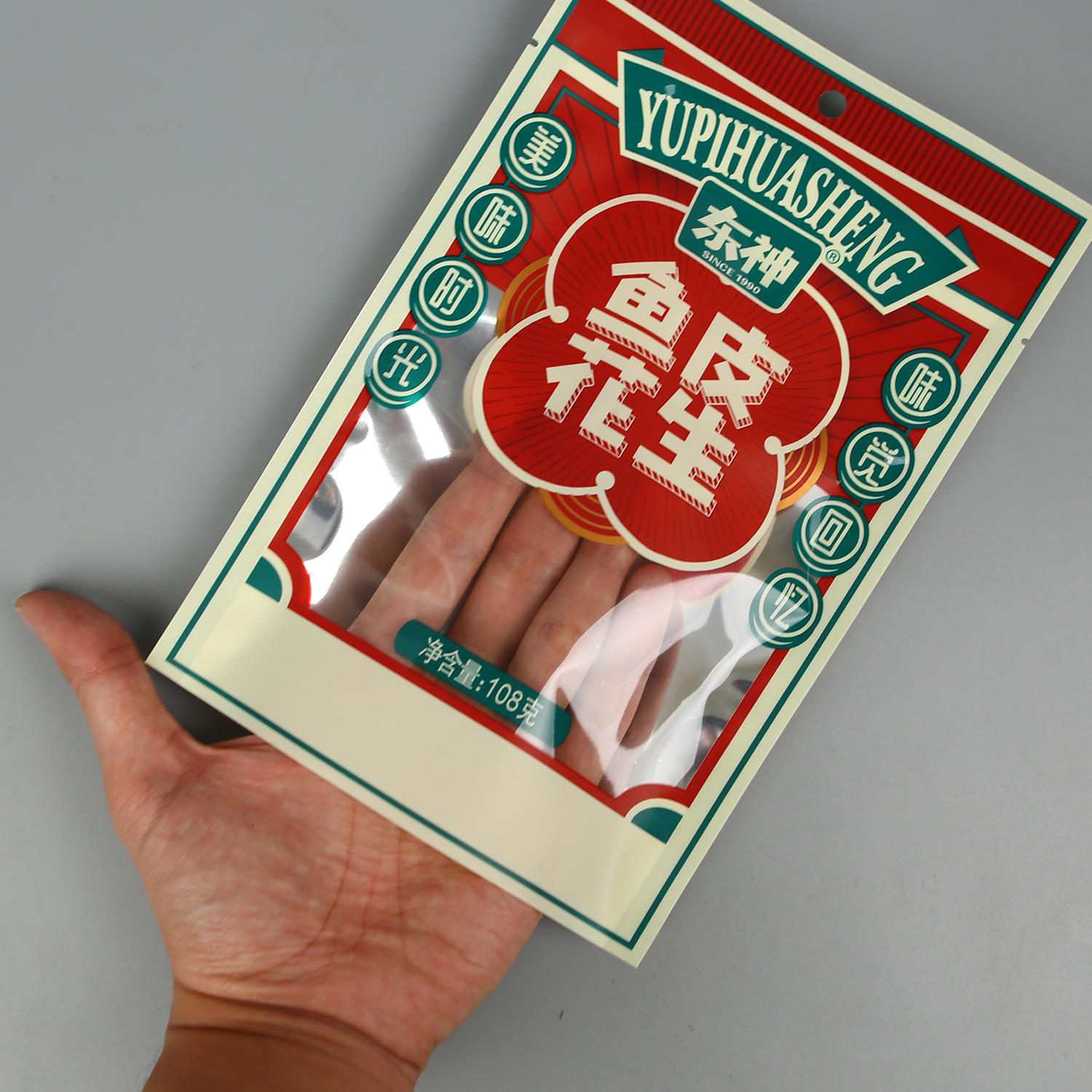 产品名称:108g鱼皮花生+亮面阴阳铝+三边封