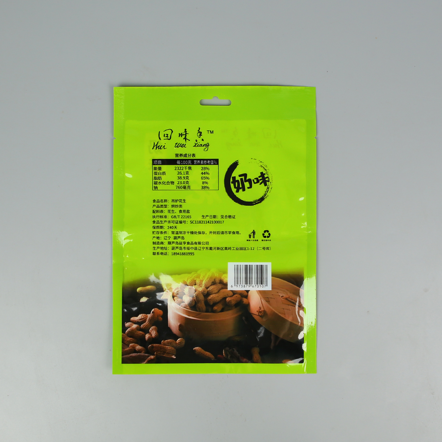 产品名称:200g奶味花生+亮面塑料复合+三边封