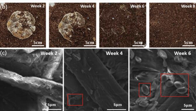 为了评估它们的细丝的生物降解性,该团队后来将其放入堆肥土壤中,发现其叶基中的酶分解了“难以降解的物质”,如角质。有趣的是,这种材料不太稳定的表面也提高了分解速度,因为它允许微生物与其接触并加速这一过程,有助于实现“可完全降解的塑料”。