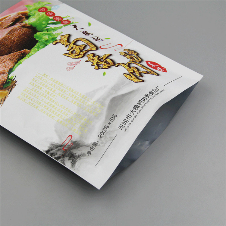熟食包装多需要进行高温蒸煮,蒸煮袋多用三层材料复合而成,具有代表性的蒸煮袋结构是:外层为聚酯膜,作加强用;中层为铝箔,作防光、防湿和防漏气用;内层为聚烯烃膜(如聚丙烯膜),作热合和接触食品用。