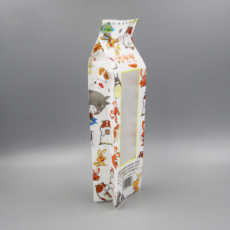 四边封袋即成袋后四条边均经过热封的包装形式,目前最常见的颗粒剂包装形式,技术成熟,工艺简单。设备运行稳定性高,造型相对美观,产品密封性较好。 四边封袋通常使用一整张膜等分为两半后相对包装,属于先整体热封制袋后进行单袋裁剪的方式,生产时只需要控制一条边对齐即可获得较好的包装效果,因此具有极高的包材/设备适应性和包装运行稳定性(这一点非常重要,由于四边封袋机速度通常慢于装盒机,常见的模式为多台四边封袋机配合一台装盒机使用,对于设备运行稳定性的要求较高)。同时,由于每条边都经过均匀的热封,成袋后的产品密封性较好。 四边封袋的缺点是对大体积物料的包装适应性不足,由于是整张膜先制袋后裁剪,因此要求制袋时复合膜相对平整,制袋后袋体为平面,难以装入大体积物料,袋内空间利用率相对较低。