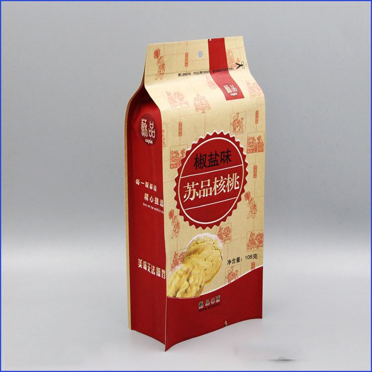 四边封袋即成袋后四条边均经过热封的包装形式,目前最常见的颗粒剂包装形式,技术成熟,工艺简单。设备运行稳定性高,造型相对美观,产品密封性较好。 四边封袋通常使用一整张膜等分为两半后相对包装,属于先整体热封制袋后进行单袋裁剪的方式,生产时只需要控制一条边对齐即可获得较好的包装效果,因此具有极高的包材/设备适应性和包装运行稳定性(这一点非常重要,由于四边封袋机速度通常慢于装盒机,常见的模式为多台四边封袋机配合一台装盒机使用,对于设备运行稳定性的要求较高)。同时,由于每条边都经过均匀的热封,成袋后的产品密封性较好。 四边封袋的缺点是对大体积物料的包装适应性不足,由于是整张膜先制袋后裁剪,因此要求制袋时复合膜相对平整,制袋后袋体为平面,难以装入大体积物料,袋内空间利用率相对较低。
