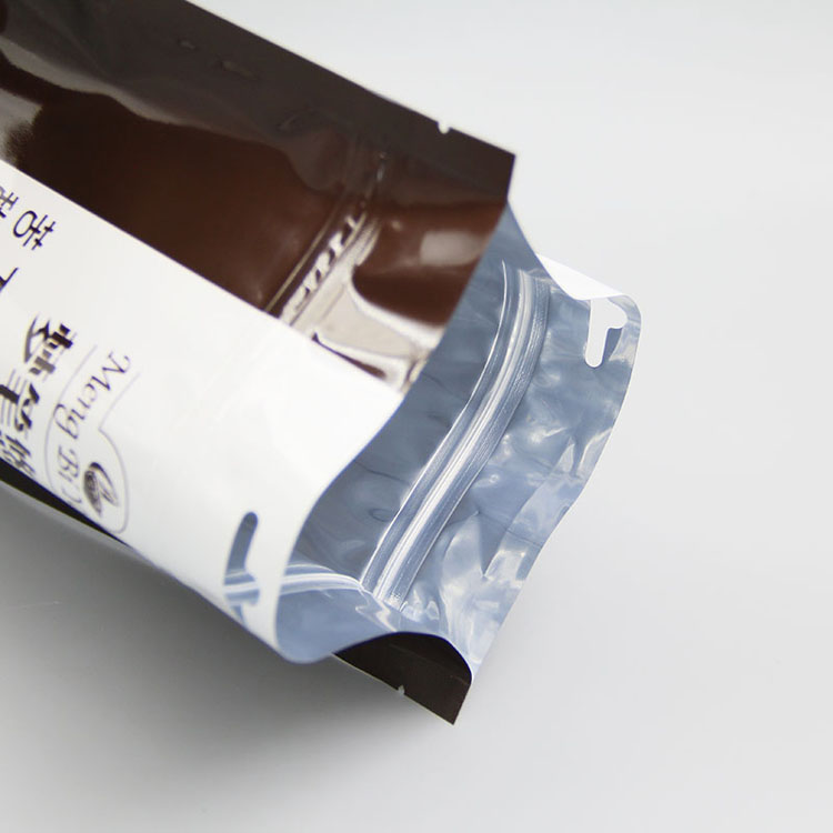 本产品为亮面镀铝自立 拉链袋 。铝箔是巧克力包装的标配,因为巧克力本身容易融化,而铝箔具有防潮作用,还有一定的遮光性,能很好的保证巧克力的稳定性,避免融化。拉链上部