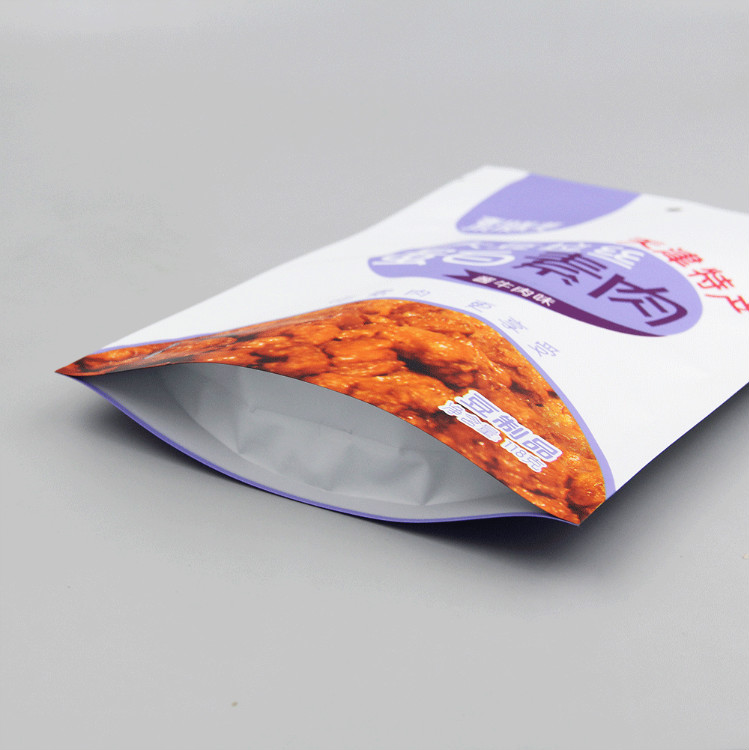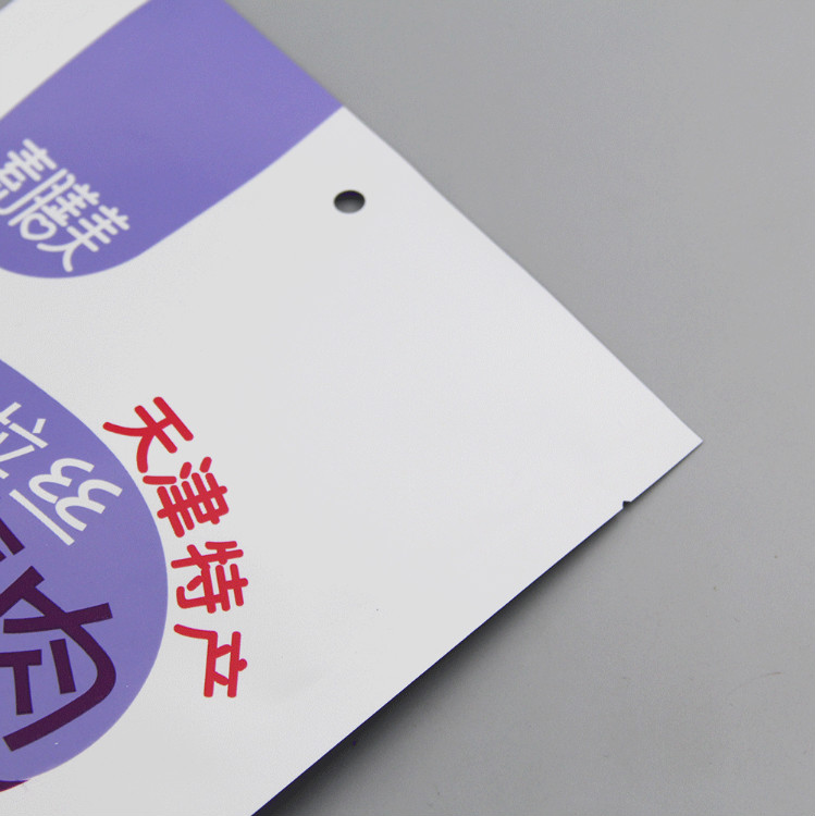 本产品为哑光阴阳铝自立袋,防潮隔热,防氧化,铝箔能起到很好的保香保味作用,非常适合含油量较高的食品。带挂孔的自立袋,可以站立摆放在货架上,也可以悬挂在货架上,展示方式更多。上部易撕口设置易撕口,方便消费者开启包装。